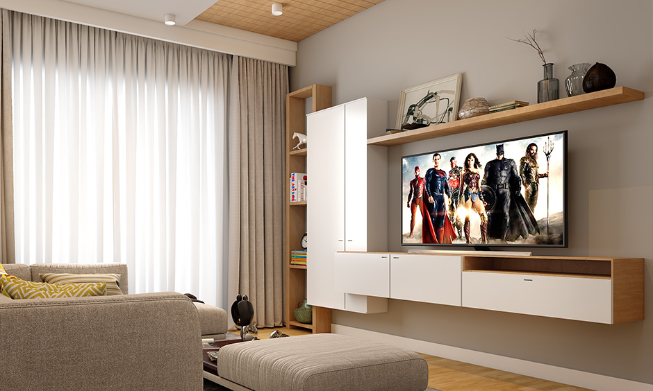 Trending TV unit designs from Noidacontractor that can be customised to your style, preference and TV sizes. TV units are essential piece of furniture that serves as a focal point for your room while giving you amazing storage options. From wall-mounted TV unit designs for the living room to TV cupboard units in the hall and traditional TV cabinets for your bedroom, Noidacontractor helps you create a functional and stylish TV unit. Browse through our budget-friendly modern TV unit designs that will help you transform the look of your home.